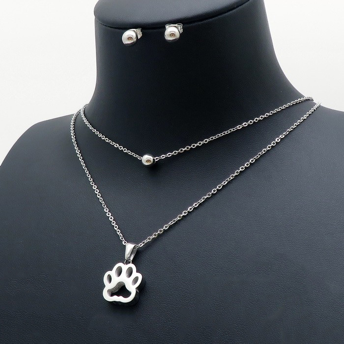 Strieborná retiazka s príveskom a náušnicami psia Labka z chirurgickej ocele