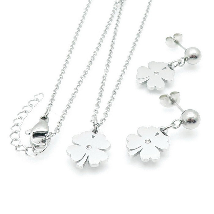 DomovDámske sety Strieborná retiazka s príveskom a náušnicami Štvorlístok z chirurgickej ocele