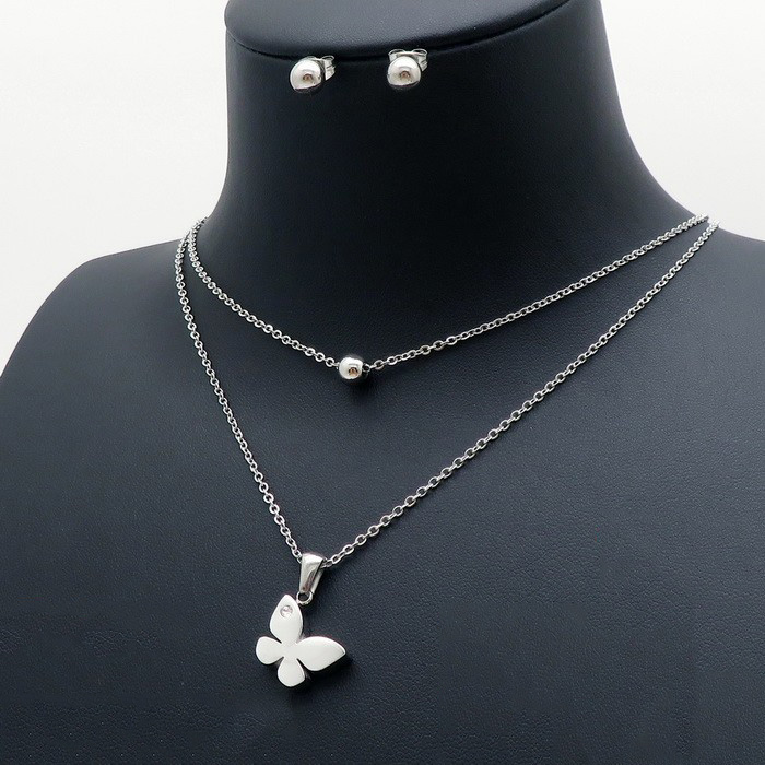 Strieborná retiazka s príveskom Motýľ a náušnicami z chirurgickej ocele
