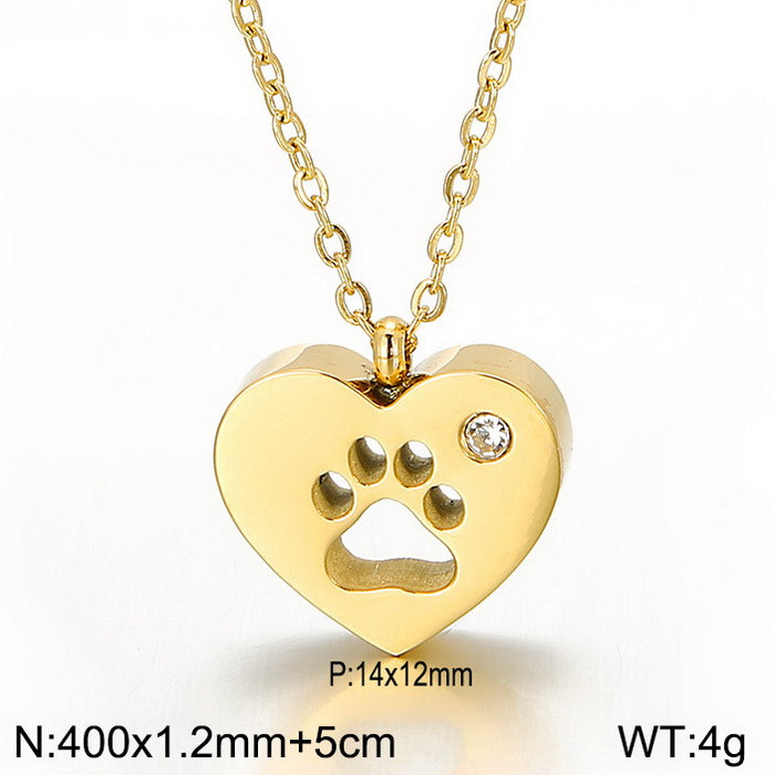 Zlatá retiazka s príveskom v tvare srdca s labkou psa z chirurgickej ocele