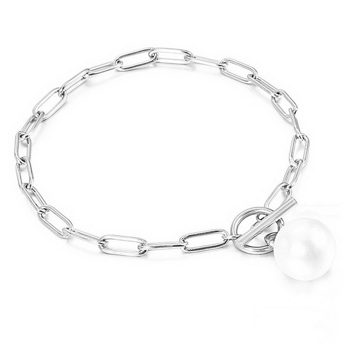 Strieborný náramok s Perlou s hranatými očkami z chirurgickej ocele