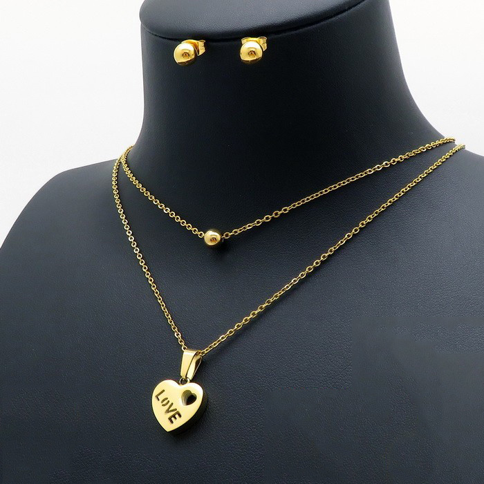 Zlatá retiazka s príveskom a náušnicami z chirurgickej ocele v očarujúcom dizajne so srdcom