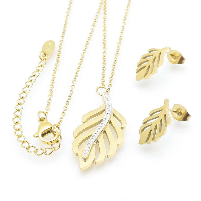 Nádherný zlatý dizajn a prevedenie retiazky a prívesku s náušnicami v tvare listu pre oživenie každého oblečenia vhodný na bežné nosenie.
