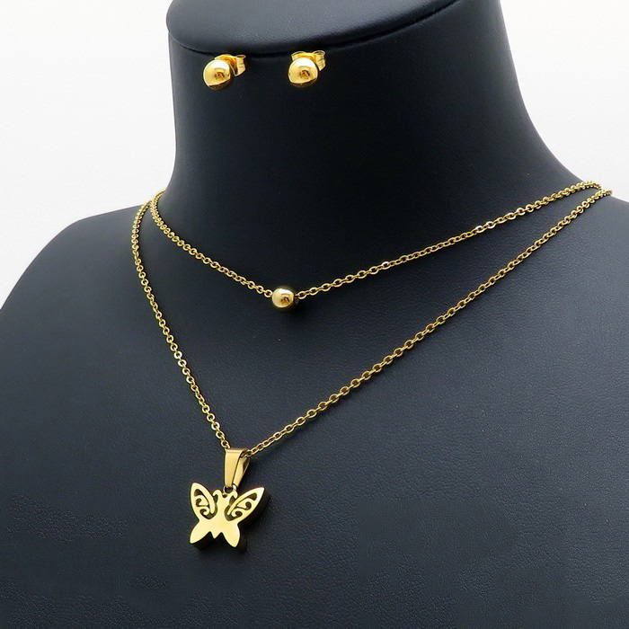Zlatá retiazka s príveskom a náušnicami Zlatý motýľ z chirurgickej ocele