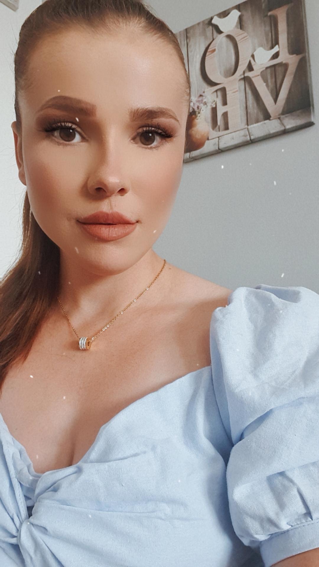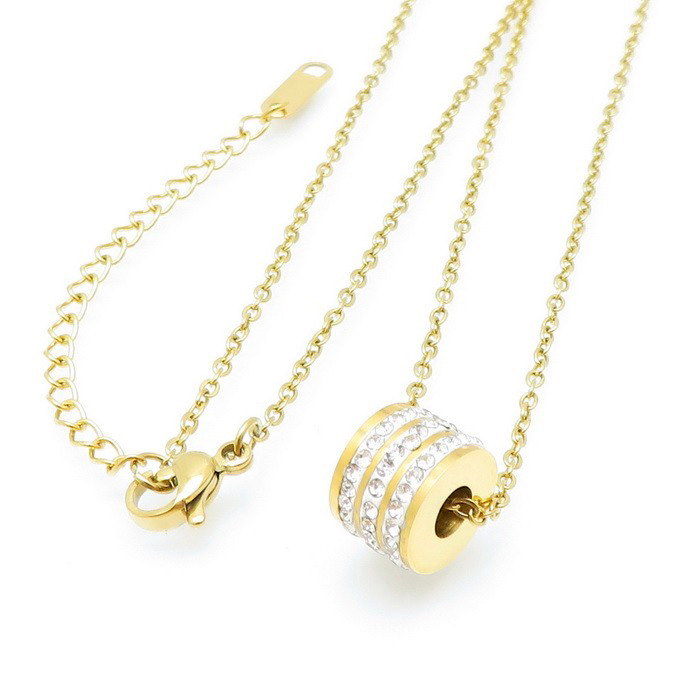 Rozžiarte svoj kúsok oblečenia týmto očarujúcim šperkom zlatej retiazky a prívesku v tvare valčeka s krištáľmi a ukážte, že sa do módy vyznáte.