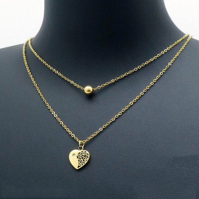 Zlatá zdvojená retiazka s príveskom srdca z chirurgickej ocele